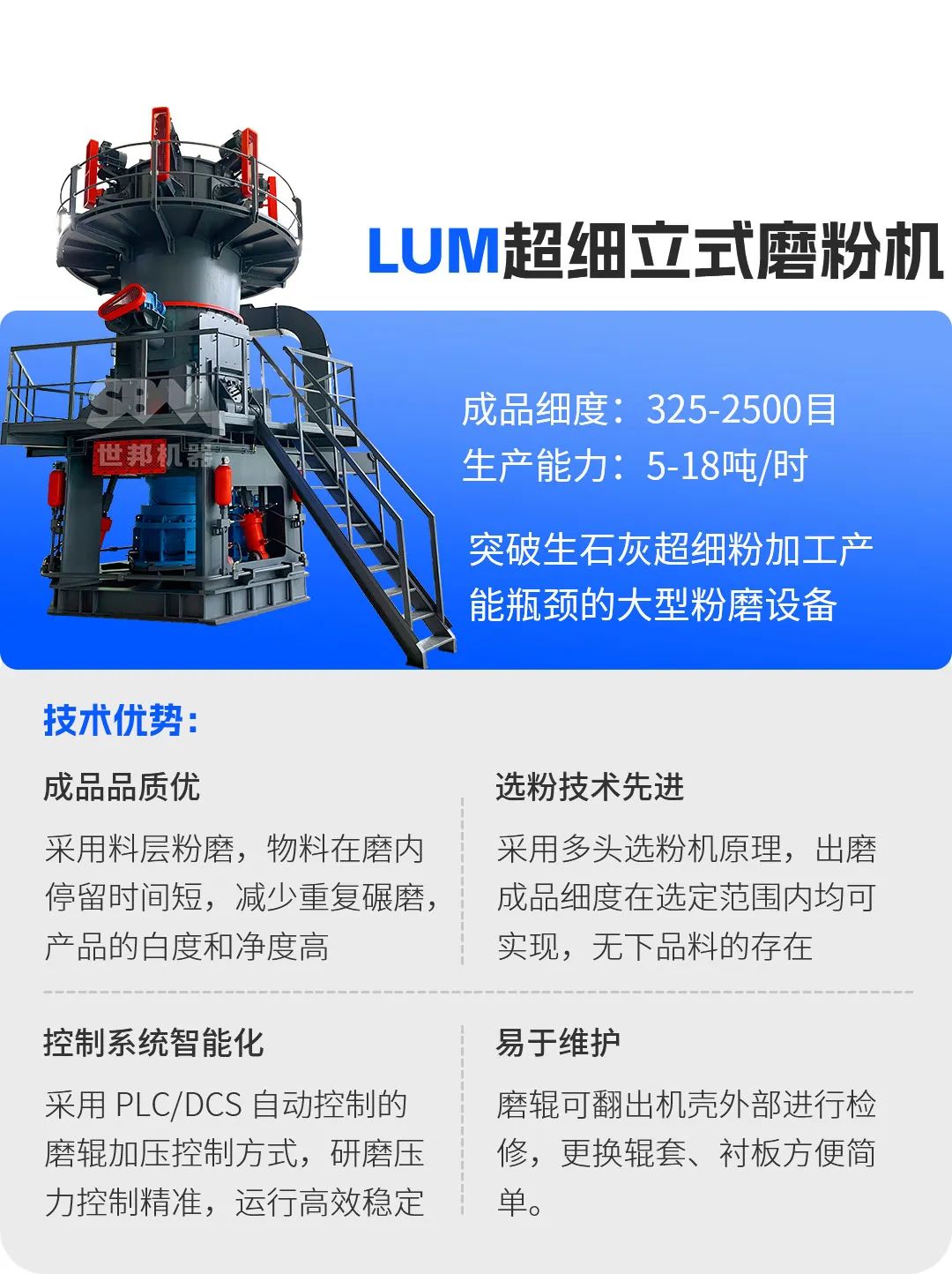 作為工業(yè)粉磨領(lǐng)域的前行者,上海世邦依托近四十年技術(shù)沉淀,構(gòu)建了涵蓋破碎、粉磨、分級、收塵的全流程智能裝備體系,為生石灰產(chǎn)業(yè)鏈提供定制化解決方案。