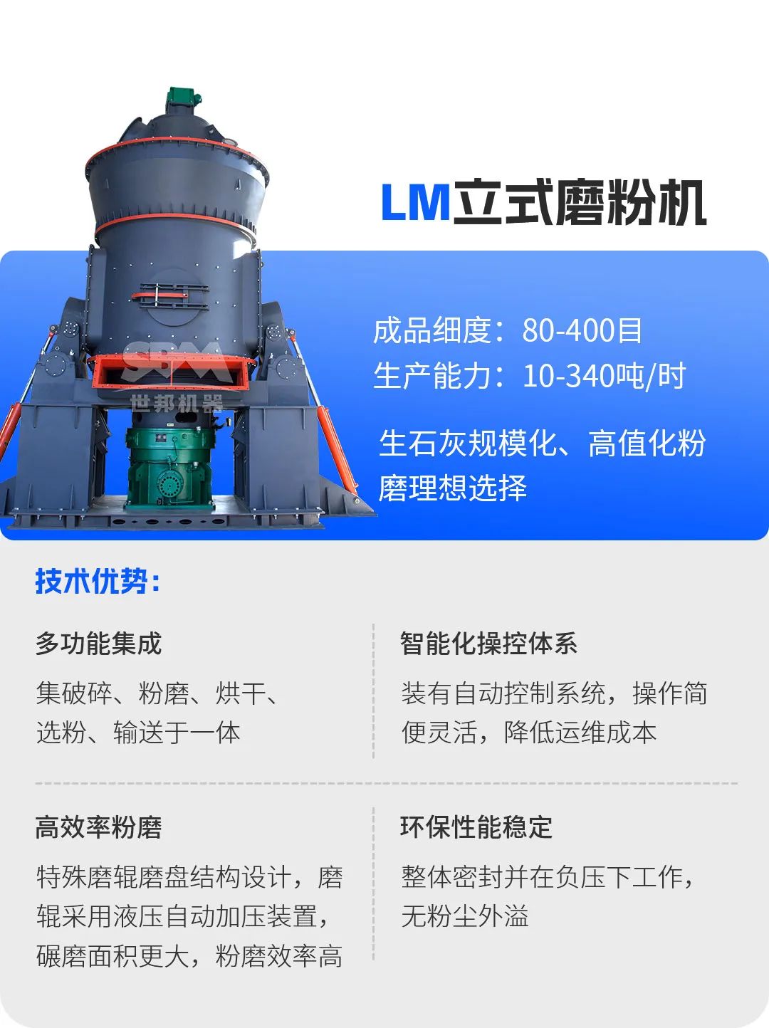 在生石灰煅燒過程中,煤粉質(zhì)量直接影響石灰窯的熱效率與產(chǎn)品質(zhì)量。上海世邦推出的LM立式磨煤機,專為石灰窯配套煤粉制備設(shè)計。